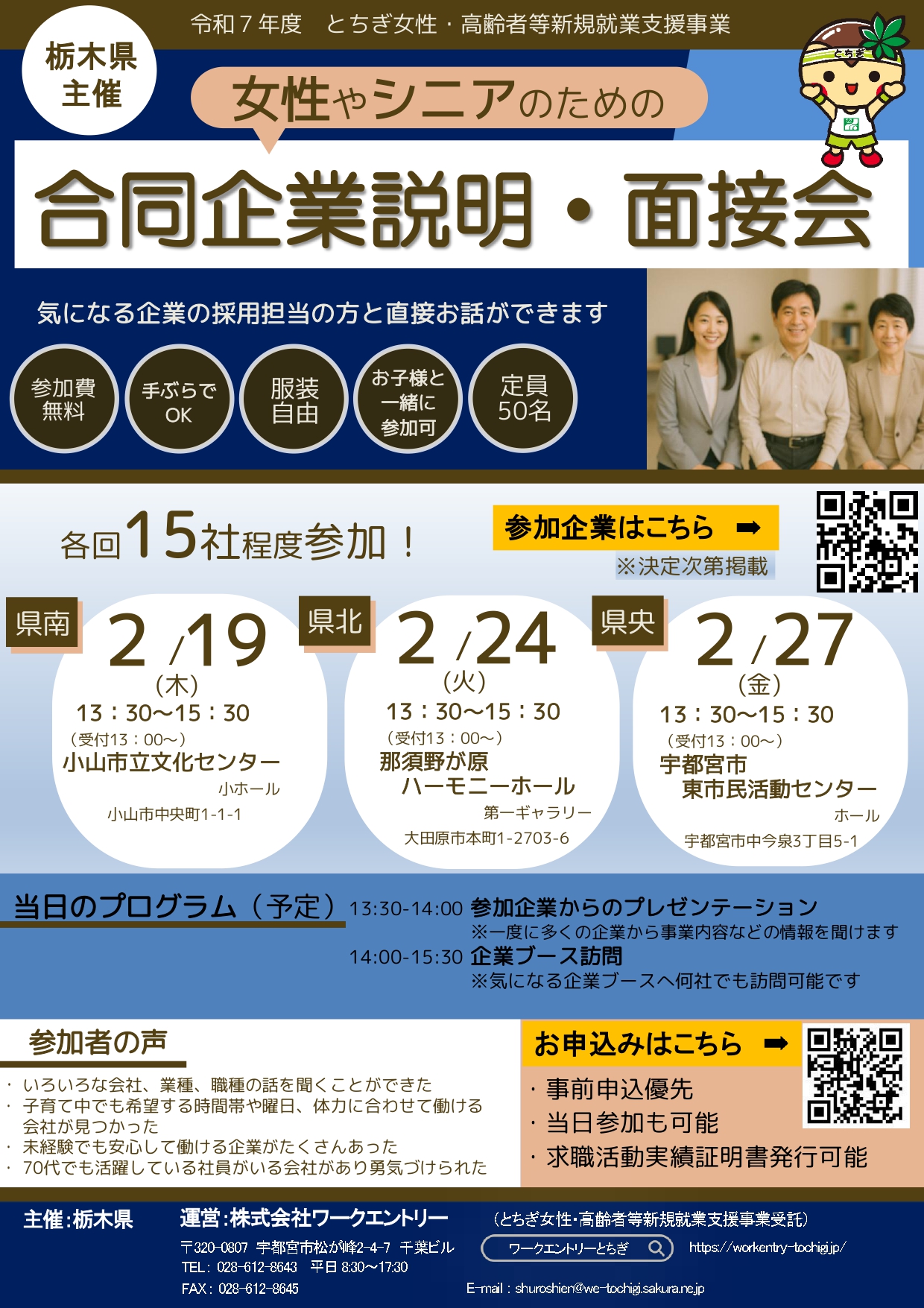 【宇都宮市・小山市・大田原市】女性やシニアのための合同企業説明・面接会
