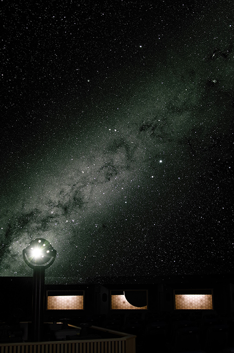 今回のリニューアルでは、プラネタリウムも新しくなったんだ。しかも、すごいんだよ。国内さい高ほうのせいのうがあるプラネタリウムなんだ。天の川を10おく3千万この星でさいげんできる、この「ケイロンスリー」は、日本でまだ3つめなんだって。