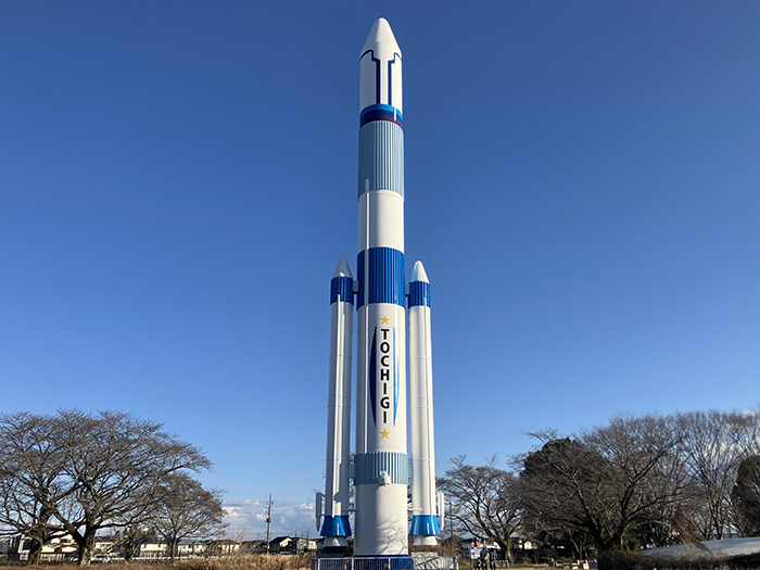 ロケットを見上げると、「TOCHIGI」の文字がドーンと入っていて、青と白がまぶしくて、今にもうちゅうにとびだしていきそうだね。